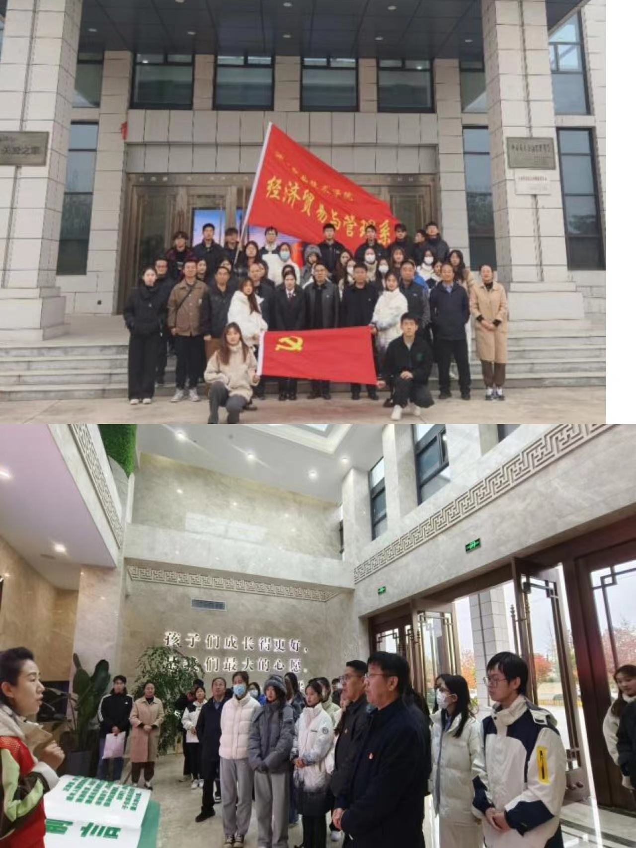 为深入学习习近平新时代中国特色社会主义思想,扎实推进红色党史的学习与传承。2023年11月24日下午,漯河职业技术学院经济贸易与管理系党总支与漯河市经开区税务局党支部联合开展党性教育活动,经管系党总支书记张改亮,系主任宋成业,副主任李炎超以及党员教师、辅导员、学生干部一行43人参加了此次活动。