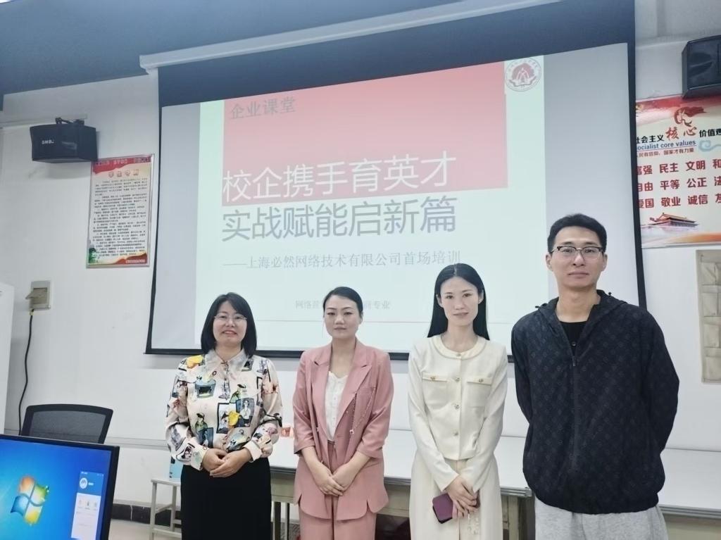 2025年4月11日上午9时,学校直播实训室内座无虚席,买球官方网站网络营销与直播电商专业与上海必然网络技术有限公司联合开展的“直播运营实战赋能计划”专业技能培训项目正式启动。上海必然网络技术有限公司积极开展企业导师进校园课堂活动,以“理论+实战”双轮驱动模式,为中国石化、榕树家等企业项目培养了高素质直播运营人才。在当天开启的首场培训中,上海必然网络技术有限公司运营总监刘晨熙、资深直播策划师林叶子作为企业导师,以“直播运营的黄金法则”为主题,结合抖音、快手等平台最新案例,现场演示直播脚本设计以及直播间的算法分析,从“3秒留住观众”的开场话术,到“促单转化”的限时福利策略,手把手教学生破解流量密码。