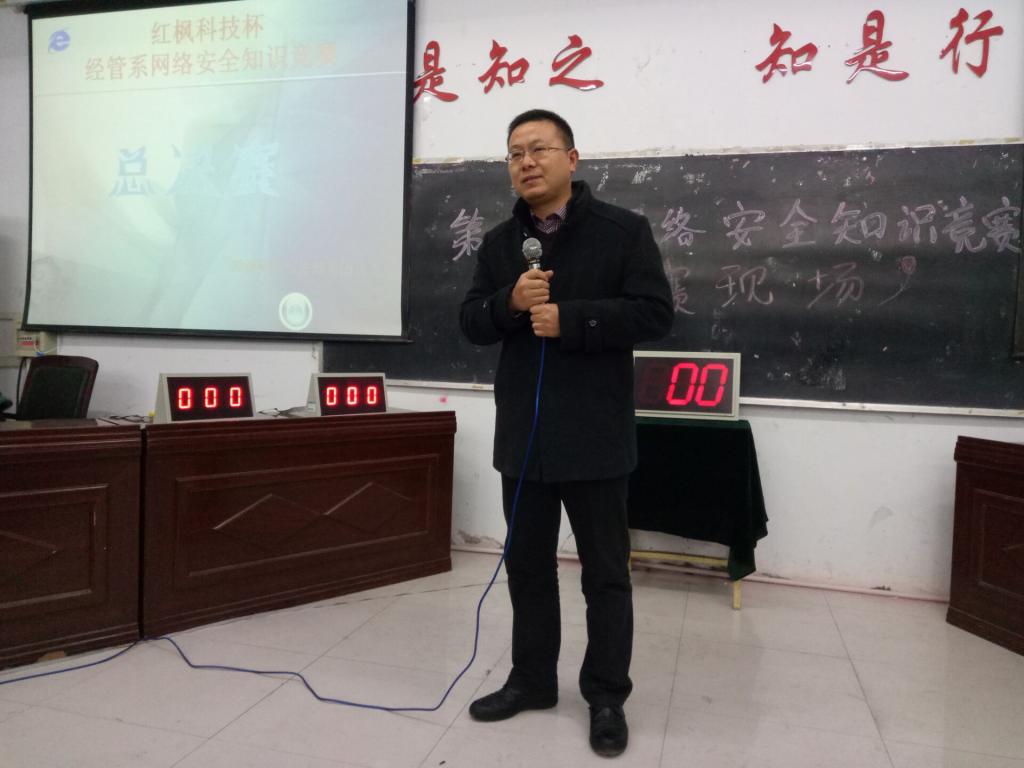 2016年12月14号下午,经济贸易与管理系团总支网络部在2107阶梯教室举行了经管系第三届网络安全知识竞赛,出席本次活动的有经管系15级和16级参赛学生,经管系团总支网络部、办公室和组织部成员,经管系办公室主任王珂琦。
