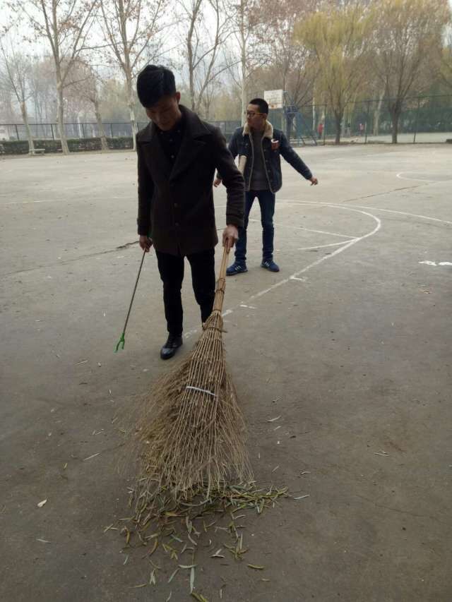 我系兰主任带领学生干部打扫卫生,创建美丽校园