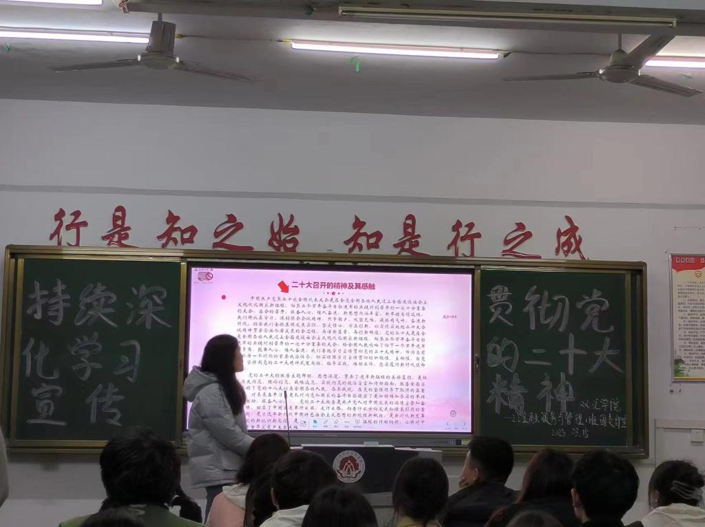 最后,主题团课以习近平总书记在党的二十大报告中的寄语:青年强,则国家强。当代中国青年生逢其时,施展才干的舞台无比广阔,实现梦想的前景无比光明。怀抱梦想又脚踏实地,敢想敢为又善作善成,立志做有理想、敢担当、能吃苦、肯奋斗的新时代好青年,让青春在全面建设社会主义现代化国家的火热实践中绽放绚丽之花!和对同学们的美好祝福中结束。