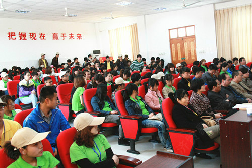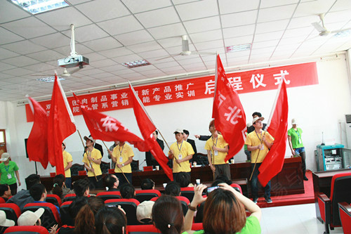 张胜副院长在致辞中指出,经过双汇集团肉制品事业部和经管系的积极筹划、认真准备,来自市场营销专业、连锁经营与管理专业的266名学生,即将分赴北京、上海等全国32个大中城市的双汇市场一线进行为期近三个月的营销技能综合实训。这是自2004年以来,经管系与双汇集团肉制品事业部第十届联合进行的教育教学改革活动,是我院校企合作、工学结合的典型范例。