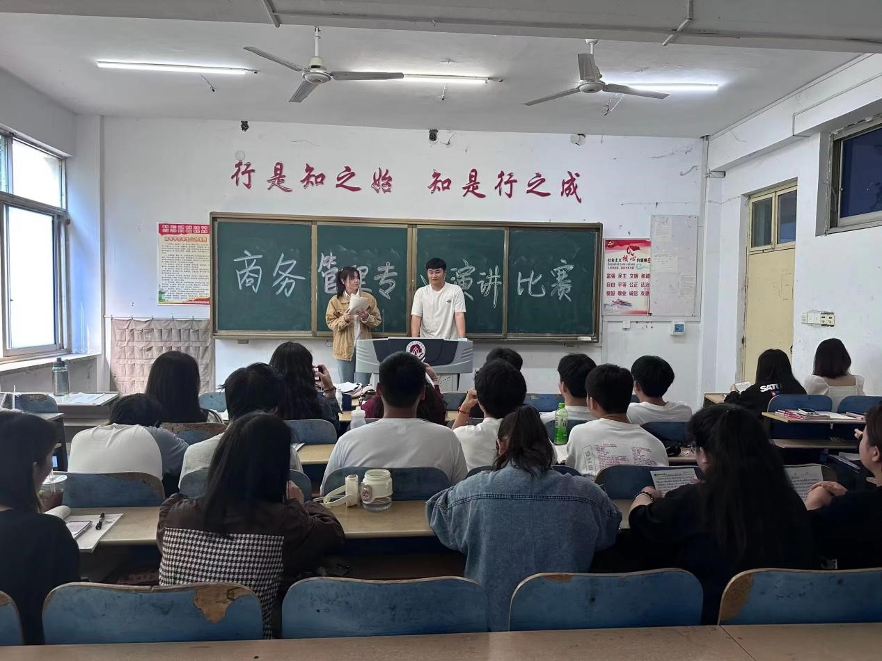 为了展现大学生的飞扬个性与青春活力,为大学生提供一个抒发情感、展现自我的舞台,锻炼语言表达能力,提升自身文化涵养,在比赛中找到努力方向,走好人生的每一步,工商管理系商务管理专业于2023年4月20日上午,在漯河职业技术学院1号教学楼214教室开展演讲比赛,2021级商务管理班全体同学参加此次演讲。