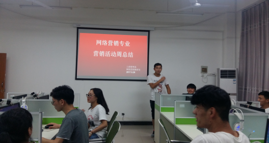 2017年5月26日晚,工商管理系网络营销专业在电子商务实训室举办了营销实训周总结会,工商管理系电子商务、网络营销教研室的教师和网络营销教研室的全体学生参加了总结会。