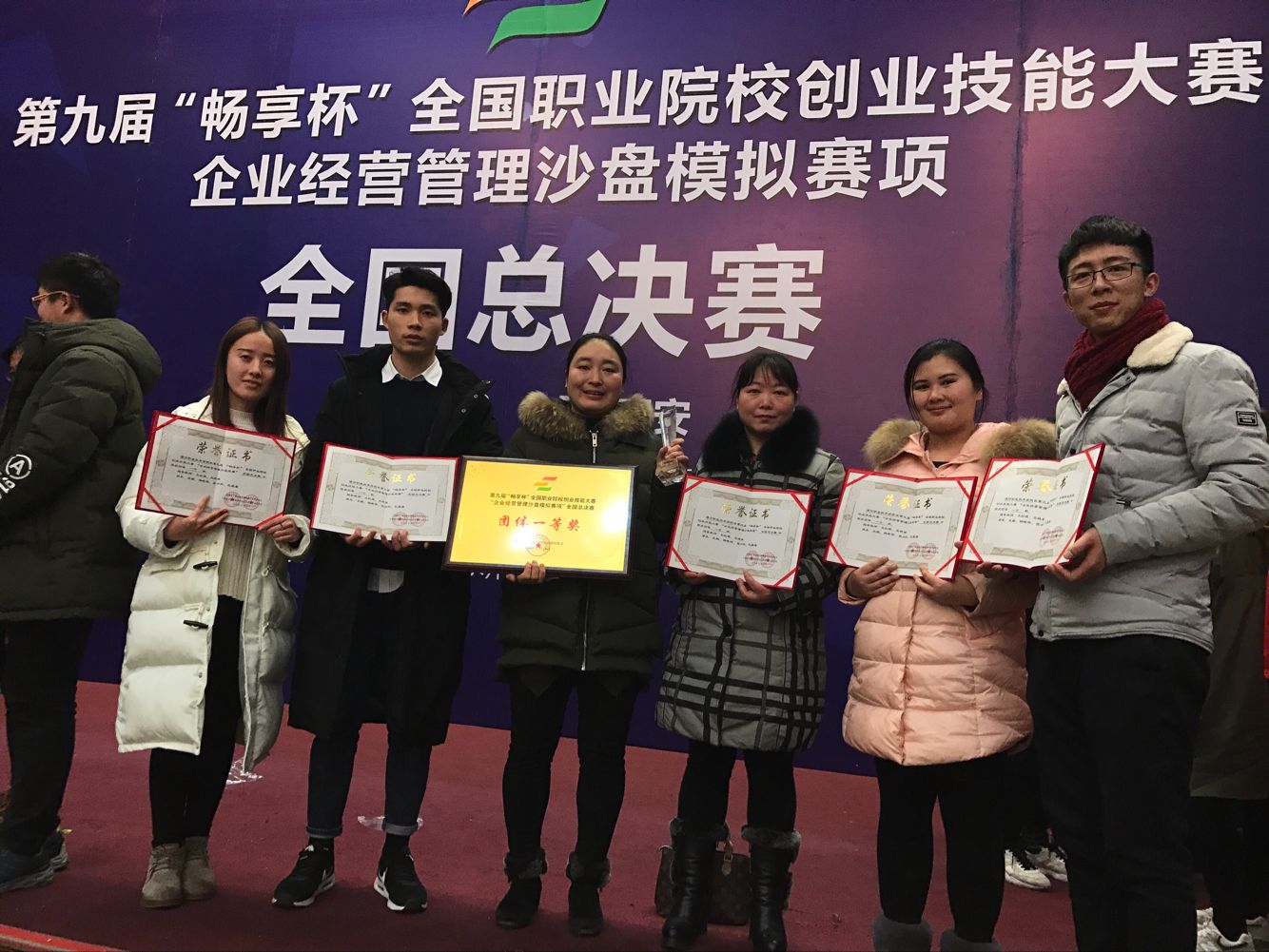 2016年12月24日,我院工商管理系学生代表队在“畅享杯”第九届全国职业院校创业技能大赛“企业经营管理沙盘模拟赛项全国总决赛”中荣获一等奖,同时举行的教师组“创业教学大赛”全国总决赛中,工商管理系参赛教师王红晓、王晓枫也取得了优异成绩。