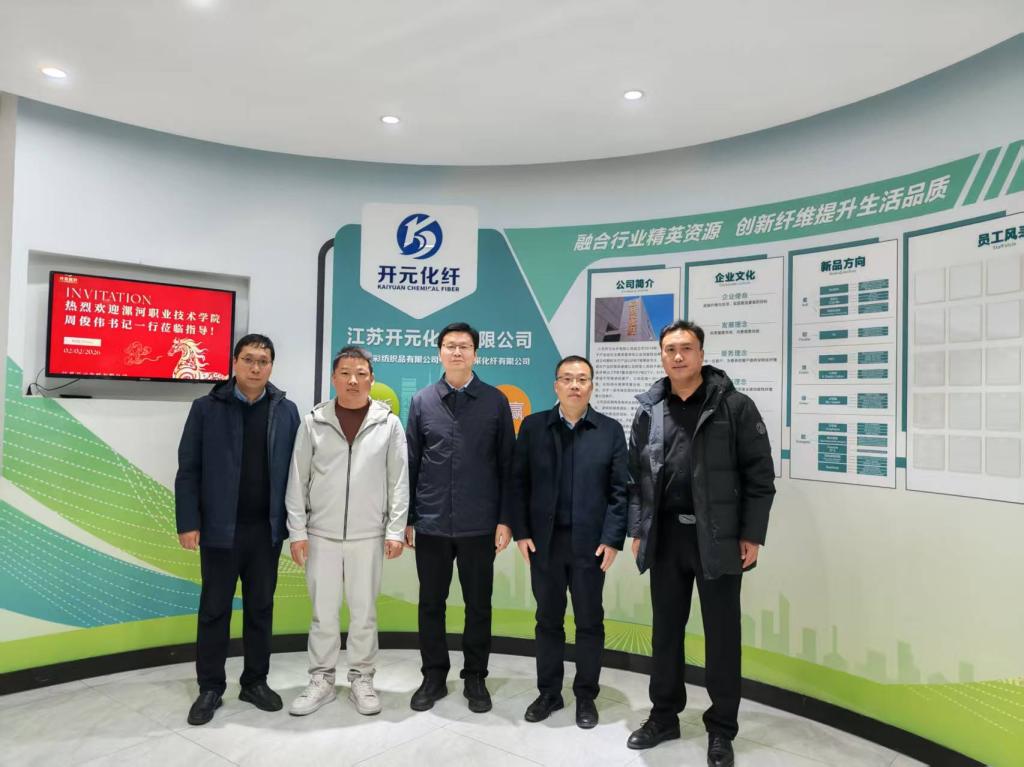 在江苏开元化纤有限公司,总经理、优秀校友李军社向母校老师介绍了公司的发展历程、核心业务、取得的建设成果,并表达了对母校的深厚感情,感恩母校的栽培,建议学校加强毕业生实践技能培养和底线思维,强化与企业的合作,不断提升毕业生职业素养。周俊伟对校友的热情接待表示衷心的感谢,对校友的成就倍感欣慰和自豪。他表示,学校近几年规模不断发展壮大,实力不断增强,正在大力开展校企合作和产教融合,希望校友们一如既往关注关心母校,广泛向社会宣传学校,积极为毕业生高质量充分就业和学校发展建设献计献策,祝愿校友们事业越来越红火,家庭越来越幸福。