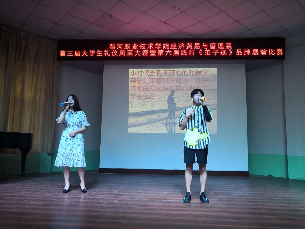 今天(5月30日)下午五点三十分,经管系师生在音乐系小礼堂举办了第三届大学生礼仪风采大赛暨第六届践行 《弟子规》品牌展演比赛。节目精彩,内容丰富。