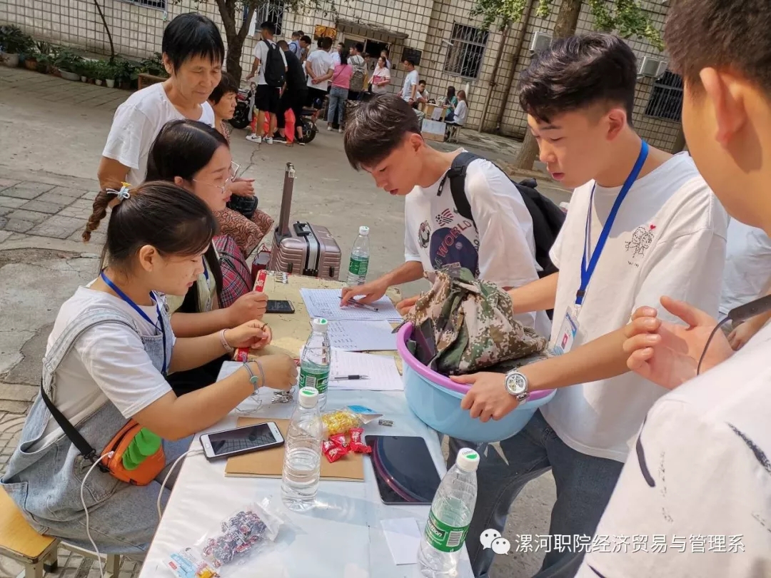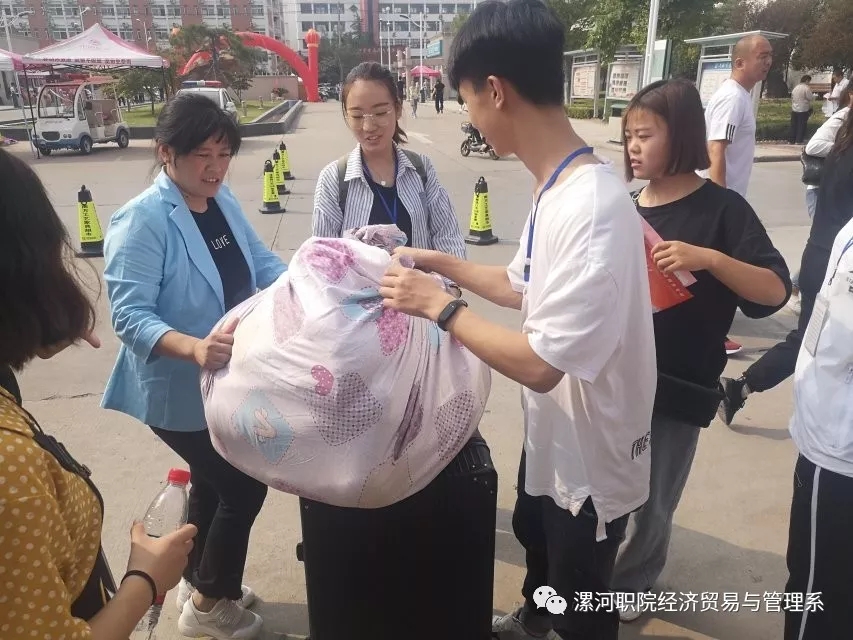 迎新工作的顺利进行离不开一群辛勤付出的工作者。他们接下新生行李,带着新生报道,带领他们进宿舍,告诉他们一些具体的注意事项以及学校的具体情况。