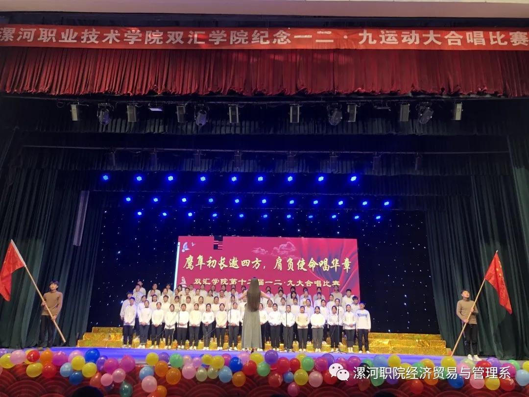 “鹰隼初长遨四方,肩负使命唱华章”,十二月四日在我们翘首以盼下,由漯河职业技术学院双汇学院团总支、学生会、宿管委三大社团在我校大礼堂联合举办的第十二届一二.九大合唱比赛如期而至。