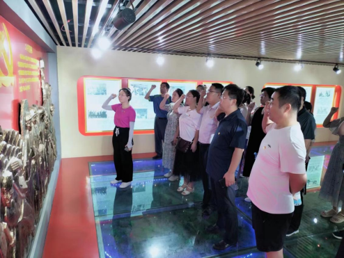 在展厅讲解员的引导下,参观党史党建馆(重温入党誓词、重温红色党史、党建教育),党史展区以历史变革为背景,重大事件为本,通过纪实性的图片、电子沙盘等展列方式,让党员干部聆听一段党史、接受一次教育,再次深深感受到了党员的责任、使命和荣耀。一段段语录,一张张照片,一帧帧影像,一幅幅字画,珍贵的史料和记录吸引着党员们驻足。直到集中学习活动结束,还有不少党员在现场仔细品味,录影留存,不愿离去。